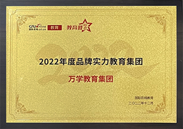 万学集团凭借在社会价值贡献、教学实际效果、教育创新成果、教学技术水平、教研团队水平和教育资源实力等多项指标的显著领先优势,荣膺“2023年度品牌实力教育集团”。